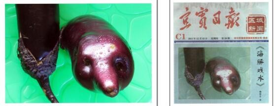 夫人买回来的两个茄子就可以创作一张《海豚戏水》图,《宜宾日报》(2011年12月15日还采用了图片。