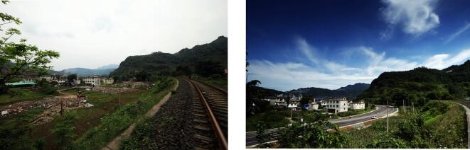 S436巡玉路武家岩变电站对面那段公路,依次摄于2021年4月20日和2022年6月27日改造建设完成的场面。