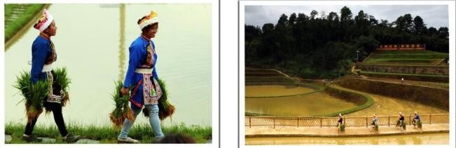 王武寨位于四川省珙县罗渡苗族乡海拔1000米的高山上,现居住有3万苗族同胞,是川南第一苗寨、非遗文化乡村。寨内有片地形凹下去的梯田,当地人叫坨田,就因为这个“坨”,不能进行中国农业机械化和现代化作业,当地人因地制宜,将这片梯田进行了升级整治成“花海坨田”,每年坚持传统的人工插秧等形式,希望把坨田建成川南一带人工种植水稻的传承基地。