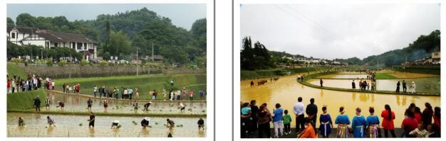 人工插秧形式曾经引来十里八乡人们的围观