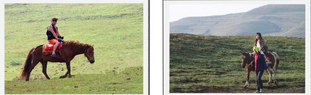 走过“跳墩河”堤坝,看到绝大多数游客骑马沿半山坡游览,我也上马摇摇晃晃跟随而至,翻过一个坡、转过一个弯……缴费15元/人。