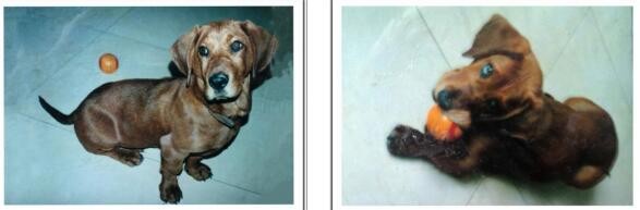 丑丑喜欢照像,也可以任人摆布,叫它站直好照标准照,刚一松手退开拍摄,它就开始耍赖下滑,左图是我用胶卷相机抓拍的三张照片的组合,右图是它神情专注地留影。