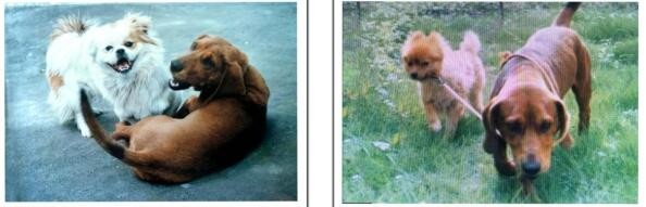 李鬼(丑丑 右)遇到李奎(博美 左) 丑丑与它的崽崽“靓靓”在一起