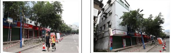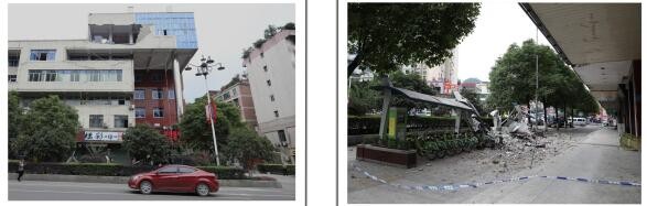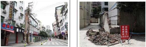 巡场镇滨河西路南一段民泰路口(珙县民政局)房屋受损场面