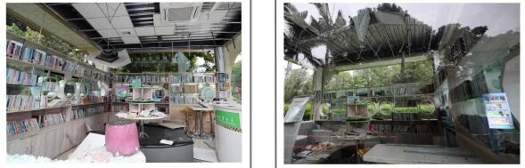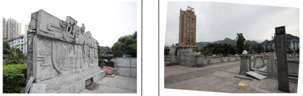 左图→巡场镇迎宾广场书亭受损场面;右图→僰文化广场公共厕所受损场面。