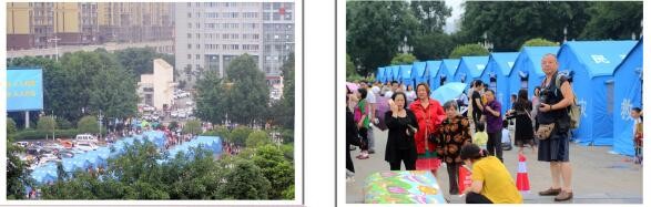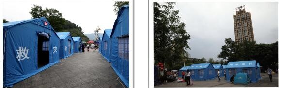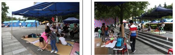 左图→珙县教育和体育局临时安置点;右图→珙县联通公司抗震救灾安置点。