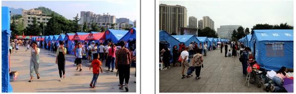 巡场迎宾广场的民政救灾帐篷