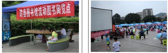 珙县图书馆、文化馆在僰文化广场设置流动图书阅览点和免费放电影。