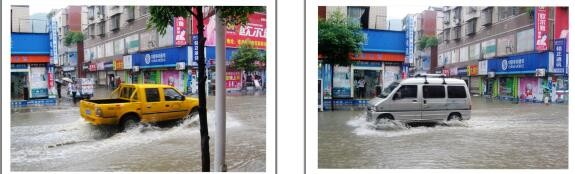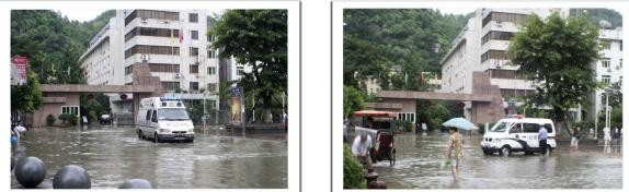 2009年8月30日,巡场新桥街珙州国际门口路段被水淹的场面。