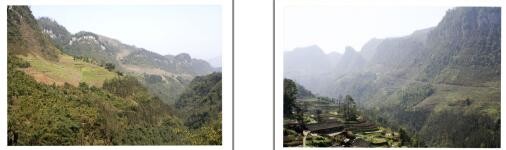 我上山下乡到珙县玉和公社五同一队从沟里头向外看的地形(左)、从沟外面向里看的地形(右)。