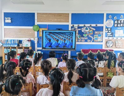 各班开展 “阅兵我知道” 开学第一课。课堂上,老师们借助鲜活的图片、震撼的视频,为孩子们揭开阅兵仪式的神秘面纱。整齐的方阵、威严的军人、先进的武器,瞬间抓住孩子们的目光。互动时,孩子们踊跃发言,分享心中军人的帅气模样,讨论阅兵感受。一句句童言,饱含对军人的崇敬,一颗颗童心,悄然种下爱国种子,开启知识与品德的启蒙之旅 。