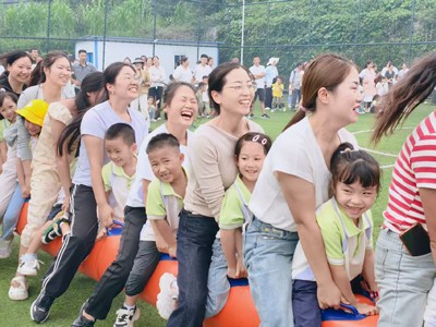 劳动过后,是充满活力的亲子游戏环节。在“亲子毛毛虫接力赛”中,家长与孩子组成一支支“毛毛虫”战队,步伐一致,口号响亮,向着共同的目标奋力前进。赛场上的加油声、欢笑声此起彼伏,展现了亲子间高度的默契与团队协作精神。