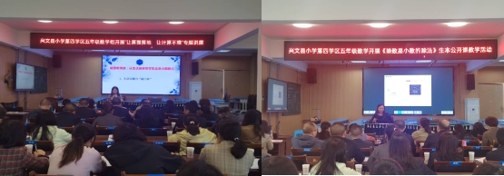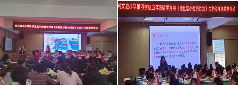 首先,城西学校陈小红老师和五星小学石润锐老师进行同课异构,执教课题是五年级上册《除数是小数的除法》。陈小红老师借助多媒体动画演示,让学生直观感受商不变的性质,通过层层递进的练习,巩固算法。石润锐老师则以生动的实例引入,通过小组讨论和自主探究,引导学生发现商的变化规律,让学生在情境中理解算理;两位老师各展风采,为学生和听课教师带来精彩课堂。