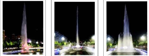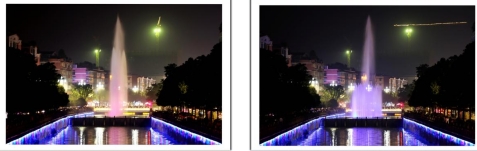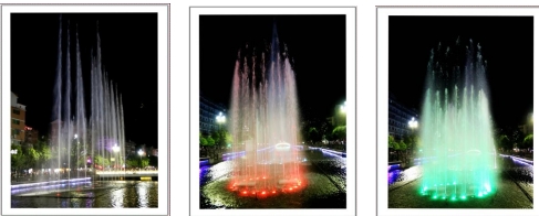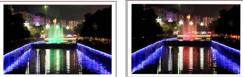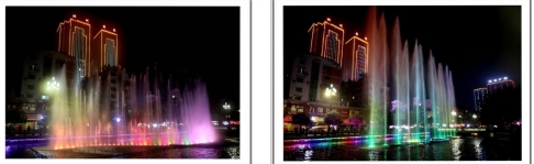 一根根彩色水柱伴随着优美的音乐和变化的灯光直冲云霄(底部构图有区别)