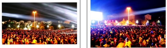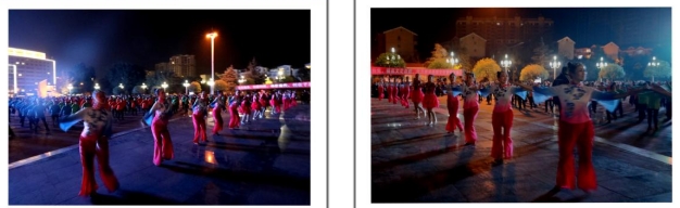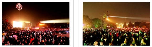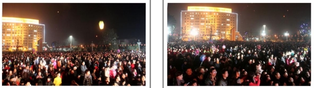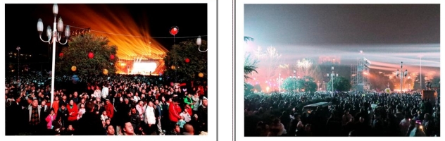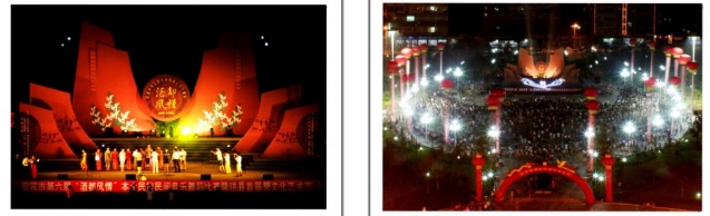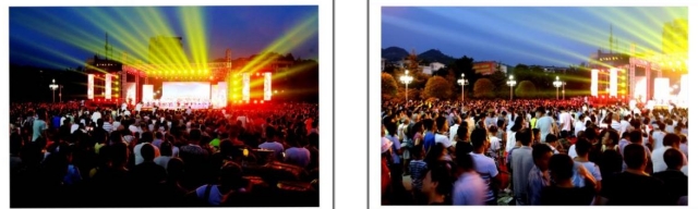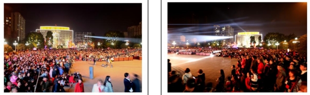 2012年2月2日夜晚,僰文化广场举办文艺演出,观众到场的场面。这两张图片是站在自己扛的棚梯上拍摄,并非是用无人机航拍。
