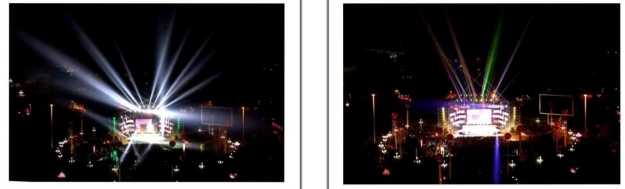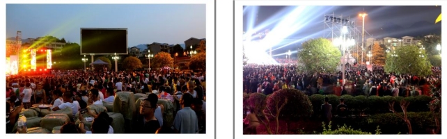 2017年7月31日夜晚,僰文化广场举办文艺演出,观众到场的场面。这两张图片是站在自己扛的棚梯上拍摄,并非是用无人机航拍。