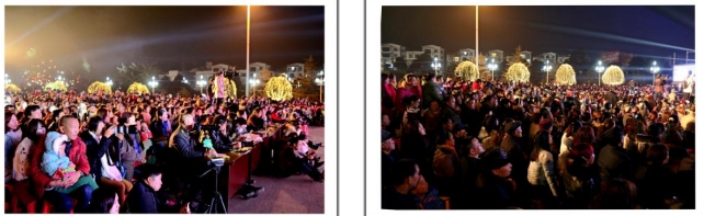2017年2月9日夜晚,僰文化广场举办文艺演出,观众到场的场面。这两张图片是站在自己扛的棚梯上拍摄,并非是用无人机航拍。