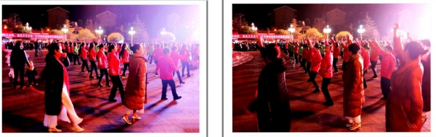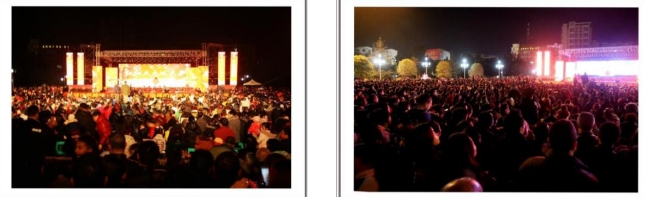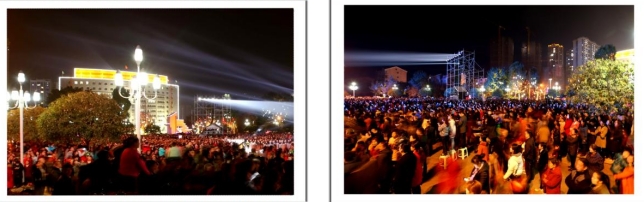 2016年1月2日夜晚,僰文化广场举办文艺演出,观众到场的场面。这两张图片是在县政府综合大楼楼顶拍摄,并非是用无人机航拍。