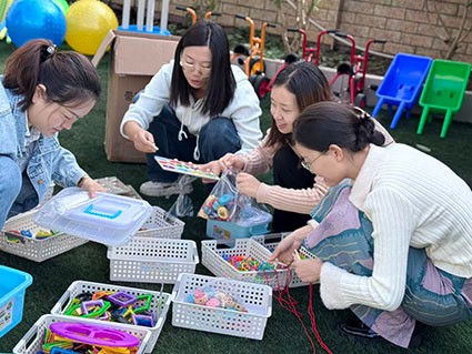 本次帮扶活动聚焦学前教育环境创设的核心要点,通过“实地指导+精准帮扶+专业培训”的模式,为两所附设班提供全方位支持。在户外环境优化方面,帮扶团队结合各园点场地特点,从空间规划、活动区域划分、安全防护升级等角度提出具体改进建议,助力其打造兼具趣味性与教育性的户外游戏空间;在区角环境建设上,重点针对材料投放的层次性、自主性和生活化,与各园点教师共同研讨,指导其根据幼儿年龄特点与发展需求,优化区角布局并补充适宜的活动材料;同时,团队成员还现场示范环创布置技巧,分享主题环创与课程融合的实践经验。