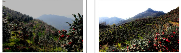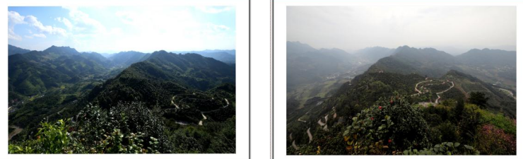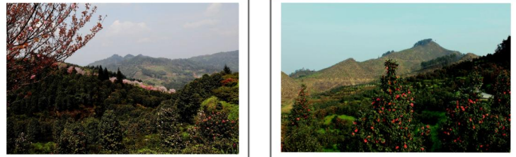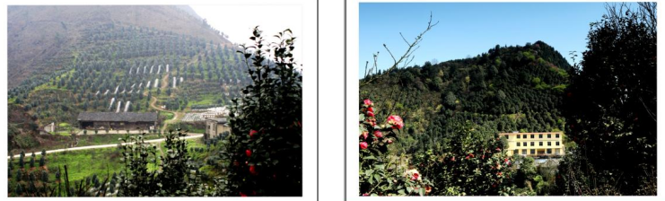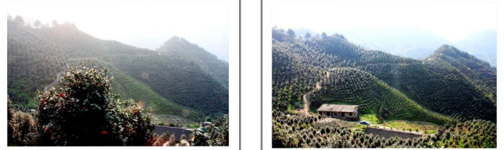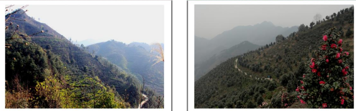 在最高处观景台向南方向看到漫山遍野的茶花林
