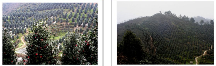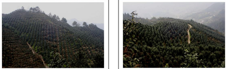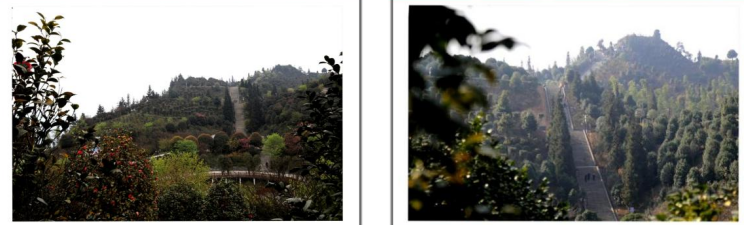 在最高处观景台向北方向看到漫山遍野的茶花林