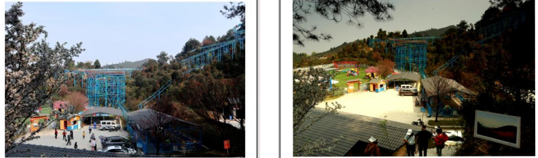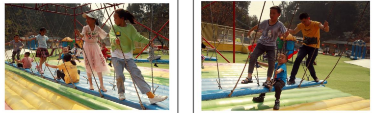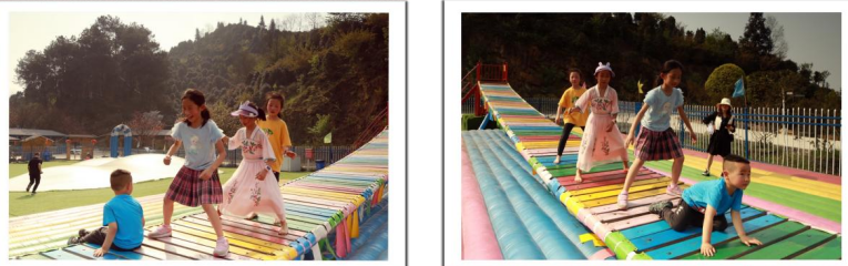 那些年,龙茶花海上面打造得比较好,不仅吸引了许多游人前来观光打卡,也吸引了有些外地商家前来投资开发。其中,有个外来企业就在花海山上建了个游乐场。2022年3月13日,我带孙女和她的小伙伴们去体验了一次。从山上下来的玻璃水道项目收费较高,我们没有去消费,只看到游客们坐在小船上,随水沿盘旋的透明玻璃水道冲下来,可能就是两三分钟时间,好像是70元/次的费用。孙女和她的小伙伴们就进游乐场耍其他大众项目,进场费10元/人。