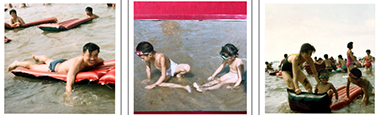 图(1):我在北戴河海边游泳的留影;图(2)儿子和侄女在北戴河海边的留影:图(3):夫人、儿子和侄女在北戴河海边的留影。