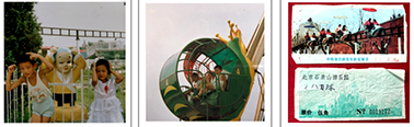 图(1):儿子和侄女在“北京石景山游乐场”的留影;图(2)侄女在“北京石景山游乐场”的留影:图(3):我、儿子和侄女在“北京石景山游乐场”的留影。