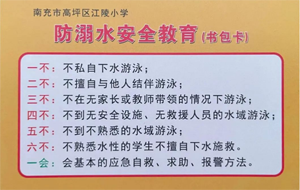 此次活动进一步加深了学生对防溺水的认识,在学校营造了浓厚的防溺水工作宣传氛围,增强了全校师生的防溺水安全意识,让每一位学生把防溺水知识牢记心中,为校园安全构筑了一道坚固的屏障。(南充市高坪区江陵小学李锦翠李春燕)