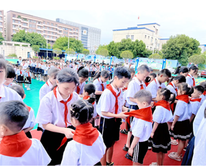 在鲜艳光荣的队旗下,在星星火炬的见证下,新队员们用无比自豪与坚定的眼神告诉大家,他们定会在红领巾的指引下,听党话,跟党走,牢记党的教诲,树立远大理想,争做新时代好少年!