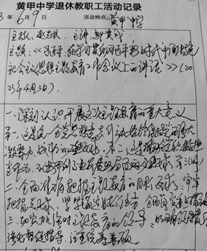 这两天活动,都是由黄甲中学退休党员赵光林主持会议,邬贵成主讲。邬贵成同志首先带领全体退休党员重温入党誓词,退休党员在重温入党誓词过程中,重温当年入党的初心,从而更加坚定自己的信念理想。