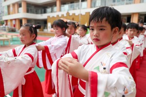 2023年6月27日, 四川省华蓥市杜家坪幼儿园举办“礼韵国风·雅颂童年”为主题的毕业典礼,大班的小朋友通过参加拜师感恩礼、点朱砂、开笔礼和才艺表演及管理小菜园等一系列活动,传承弘扬中华民族优良的传统文化,感谢老师、父母的培养教育,告别幼儿时光,激励珍惜读书机会,开启走上人生起点的小学生涯。