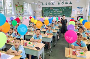 过入学拱门、跨祝福栏、领开学礼物、打卡合影、精心装饰的教室、干净的桌椅,富南师生的开学仪式处处都展现出了学校用心、温馨、有爱。“我们以前读书的时候没有这些仪式感。开学第一天,收到了老师们用扎花整理好的全套书籍、孩子爱不释手的饮品,看着精心装饰的课桌、孩子的笑脸,很羡慕我的孩子。我很放心孩子在这样美好的环境中学习、成长。”小学一年级新生家长张丽萍说。