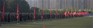 上午8时整,军训闭营仪式正式开始。国旗护卫队斗志昂扬,气势如虹,迈着铿锵有力的步伐护旗前行。“升国旗,奏国歌”,在庄严的国歌声中,鲜艳的五星红旗在白中校园冉冉升起。