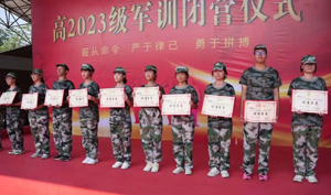 高2023级8班肖馨怡代表全体新生对老师的悉心陪伴与教官的倾情付出致以诚挚的感谢,誓将不断巩固军训成果,发扬军人作风,努力拼搏,勇往直前,笑迎高中新生活。