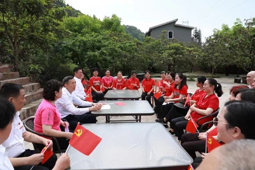 4月21日,南充市顺庆区老年大学声乐八班党小组长罗荣祥带领全班50余名党员,来到风景秀丽的西山桃园农家乐开展党小组活动。重温入党誓词。学习习近平总书记重要论述。畅谈心得体会。班长雍健参加活动。班主任马小林出席活动并作讲话。