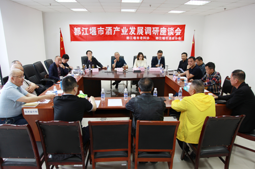 4月19日上午,都江堰市老科协、市酒业协会联合召开酒产业发展调研座谈会。市科协主席江竹、副主席黄晓虎及经科信局赵刚等到会指导。市老科协会长刘刚、市老科协副会长兼秘书长康忠勇、监事长程元章参加座谈会。都江堰市酒业协会会长徐彬、市个体经营经济协会会长柏龙军、四川问花村文旅集团董事长杨仁祥以及部分酒企、酒品经销商代表参加座谈会。会议由老科协副会长周德明主持。