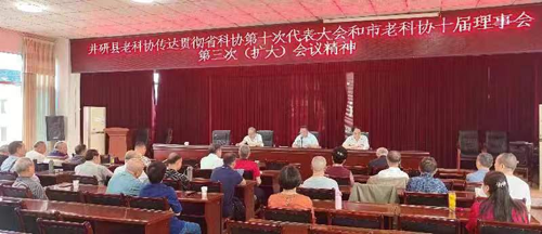 4月29日,井研县老科技工作者协会召开全体会员大会,传达乐山市老科协第十届理事会第三次(扩大)会议和四川省科学技术协会第十次代表大会精神,安排落实“美丽乐山·银龄行动”科技服务品牌创建活动等工作。井研县科协主席、县老科协会长宋智平到会传达致词,县科协副主席、老科协副会长景建忠,老科协副会长崔树文出席,会议由老科协秘书长徐修明主持。
