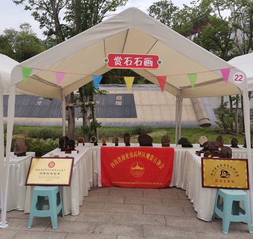 2024年5月16日,南充市高坪区观赏石协会。受邀参加在位于阆中市的南充文化旅游职业学院主办的“非遗进校园 文化共传承”的非遗展示活动。(李明)