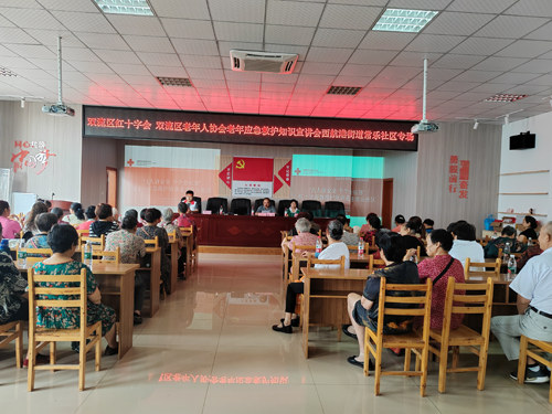 为全面贯彻落实党的二十大精神,坚持以人民为中心,全面普及应急救护知识,最大限度减少突发事件和意外伤害造成的伤亡,2024年5月22日上午,西航港街道老年人协会在常乐社区四楼会议室召开了由双流区红十字会、双流区老年人协会西航港街道常乐社区专场的“救在身边 银龄守护”老年人应急救护知识宣讲培训会,参会人员有西航港街道老协会班子成员、辖区居民共计66人。