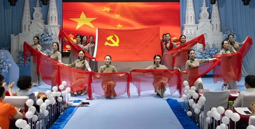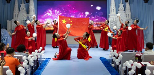 在《没有共产党就没有新中国》的雄壮歌声中,庆祝活动拉开序幕。