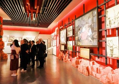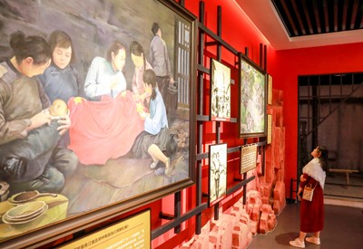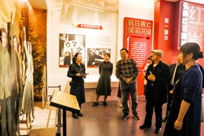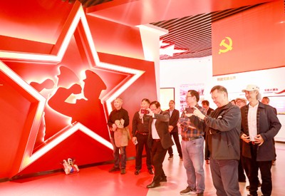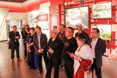 在川渝两地开展的“深入生活,扎根人民”主题采风活动中,作家们在华蓥市禄市镇的“三红”广场展厅参观。