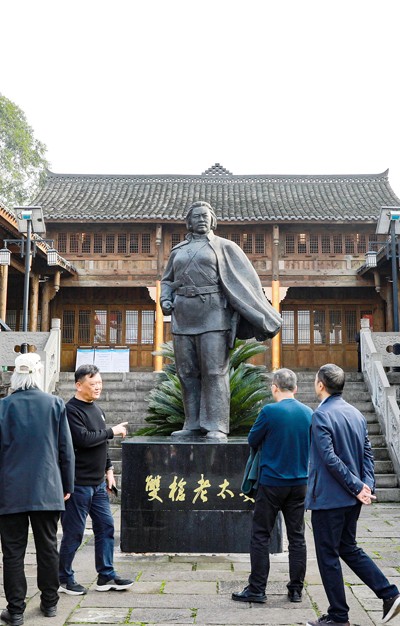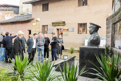 在川渝两地开展的“深入生活,扎根人民”主题采风活动中,作家们在华蓥市禄市镇开国中将毕占云事迹教学点釆风。