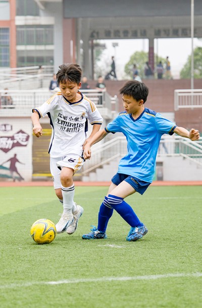 2024年11月15日,四川省华蓥市参加中小学生校园足球决赛小学组的选手,在赛场奋力拼搏。