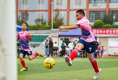 2024年11月15日,四川省华蓥市参加中小学生校园足球决赛小学组的选手,在赛场奋力射门。(邱海鹰 刘南贤/文图)