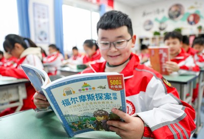 广安启睿第一实验学校“柴云振班”的学生,在阅读文阳清等爱心人士送来的课外书籍。
