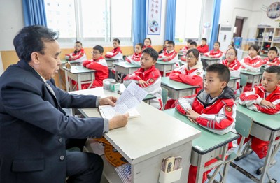 文阳清在广安启睿第一实验学校“柴云振班”对学生进行爱国教育。