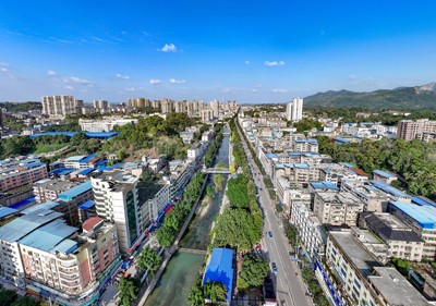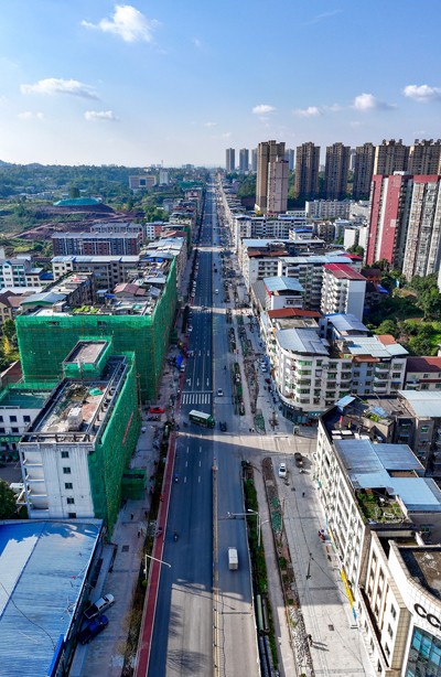 2024年11月27日,鸟瞰四川省华蓥市蓥城提质改造升级工程基本竣工的广华大道一角。(邱海鹰 刘南贤)