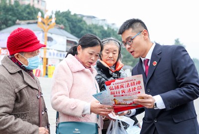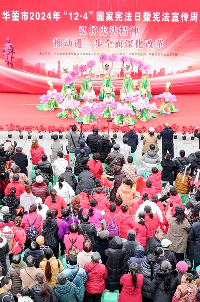 今年12月4日是第十一个国家宪法日,四川省广安华蓥市围绕“大力弘扬宪法精神,推动进一步全面深化改革”主题,组织司法、公安、检察、法院等部门的政法工作者和老年法治宣讲团等社会团体的志愿者,分别深入乡镇村组、社区、校园和街头巷尾、广场公园,以宣讲、文艺展演、知识竞赛和挂图展览、发放资料及咨询等多种形式,拉开2024年“宪法宣传周”活动帷幕。