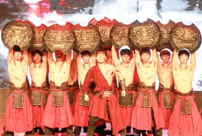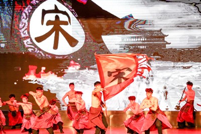 2024年12月6日,四川省广安华蓥市的学生在教育学术年会上,表演具有地方特色的舞蹈节目《家国情怀——英雄安丙》。